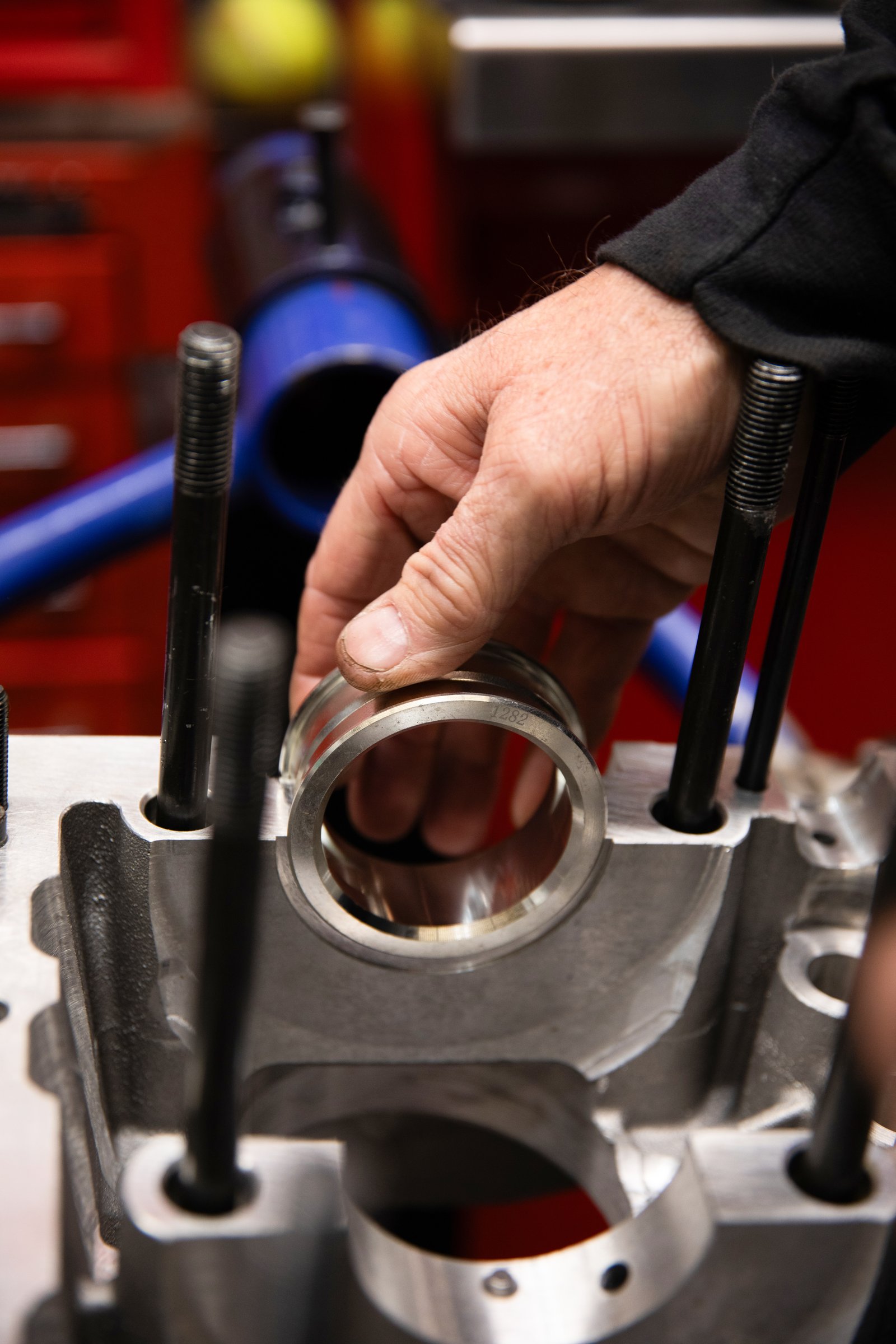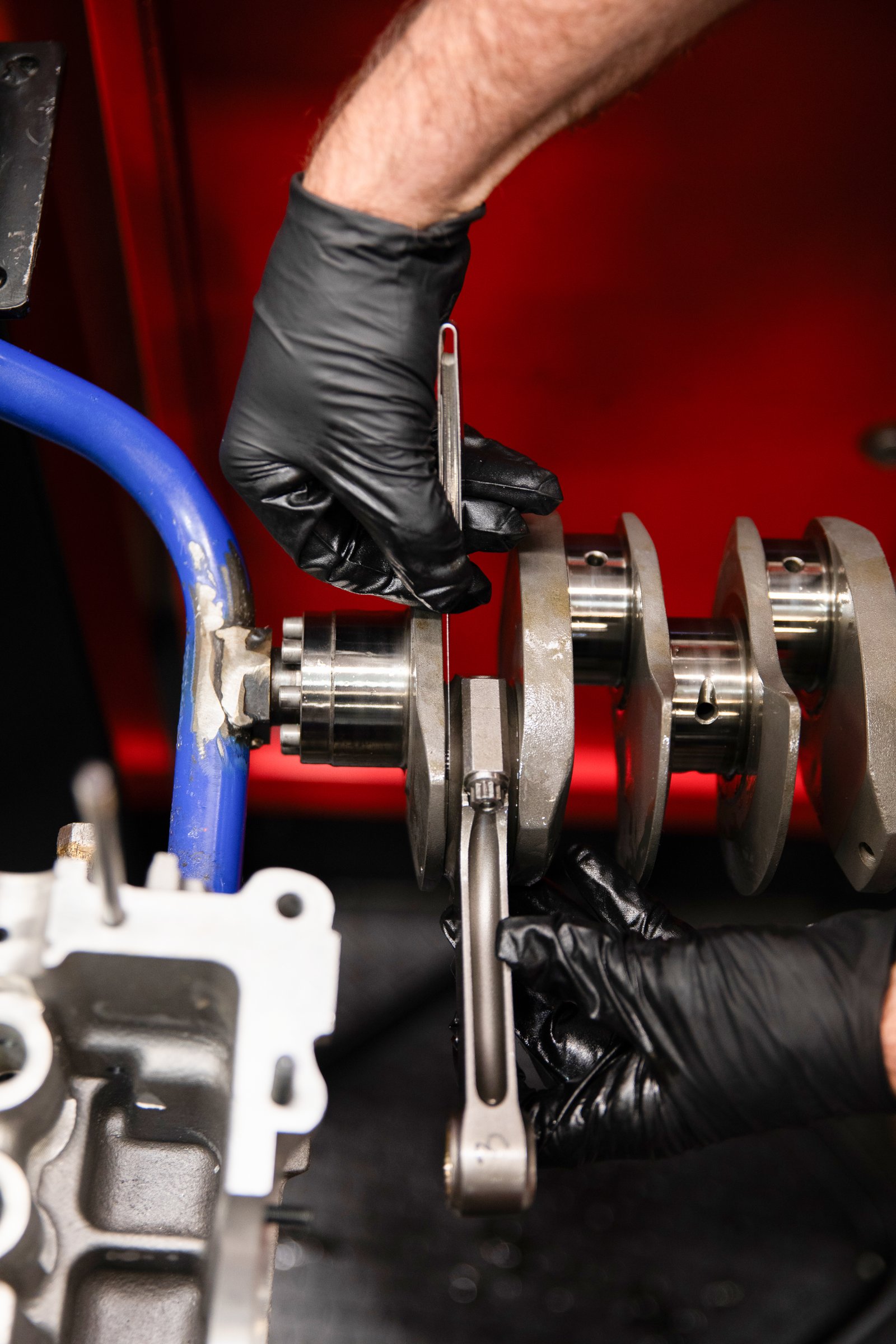 Each component was selected with the build in mind, ensuring compatibility from mockup through final assembly — see detailed list. Before any assembly begins, the Autolinea case undergoes a complete inspection and preparation process. All bearing saddles, lifter bores, and threaded holes are carefully inspected. Main bearing saddles are checked for proper finish, and the Mahle bearings are test-fitted and measured to confirm correct crush and oil hole alignment.